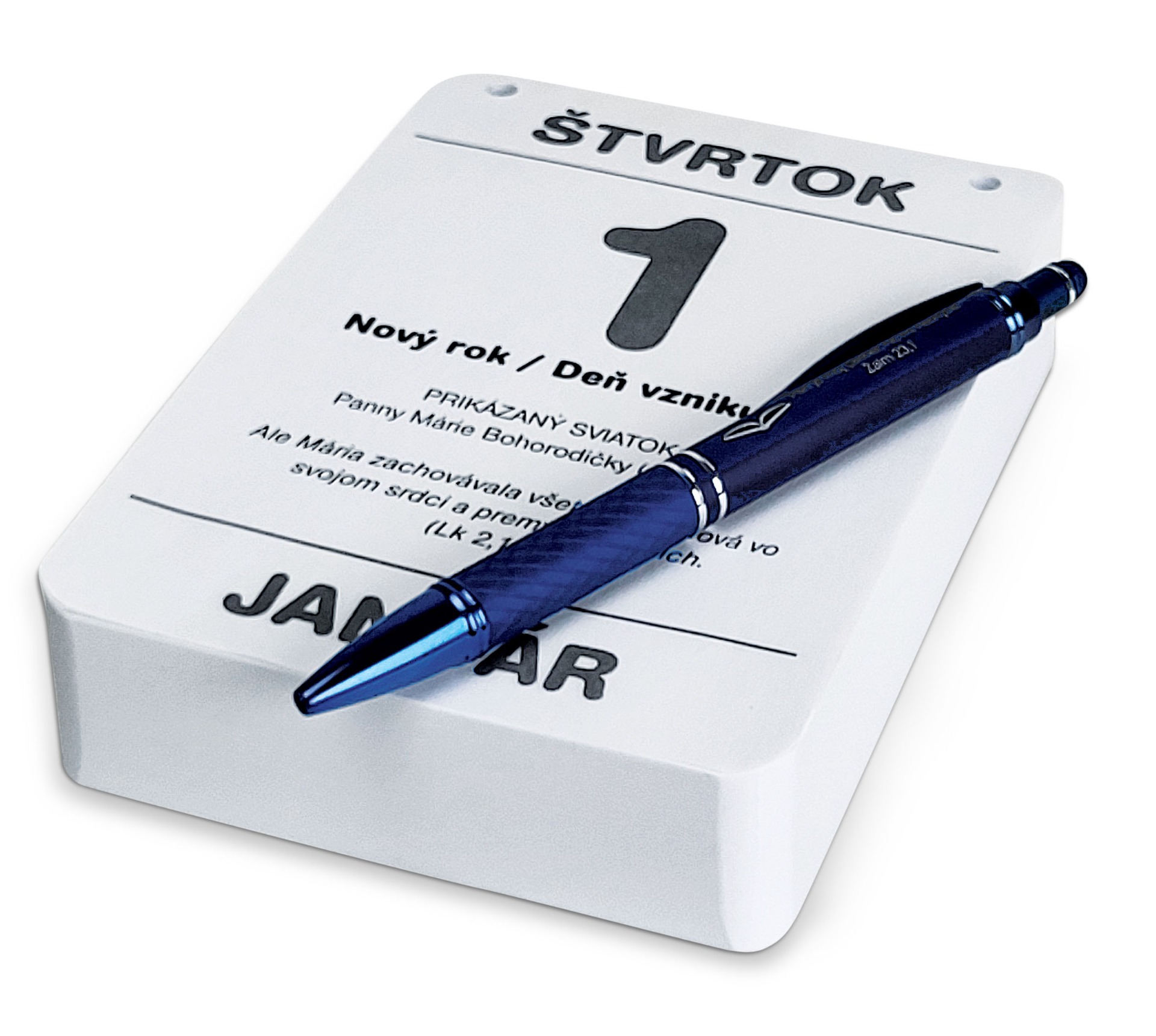 Kalendáre expedujeme do 2 pracovných dní od objednávky. Pero nie je súčasťou balenia.